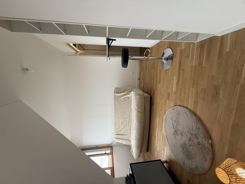 We have 110m2 on 3 floors and a beautiful terrasse on the 11th floor of our building. We love to cook !